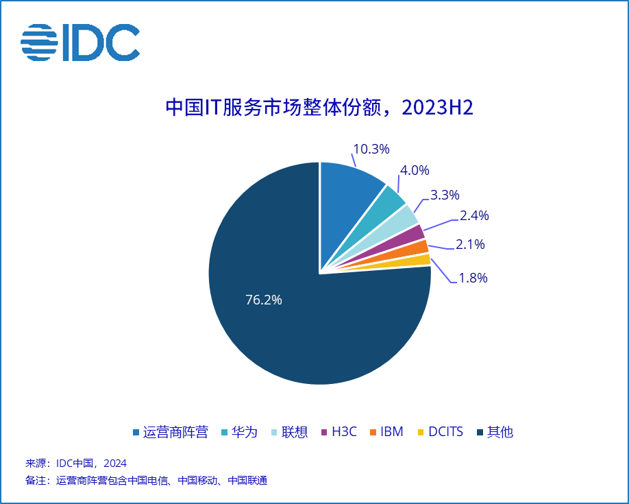 2021年之后,在IT服务阛阓上,IBM的份额越来越小。据IDC的数据,2022年上半年份额为2.8%,依然逾期于华为、联思等国内公司,丢了第一的位置。